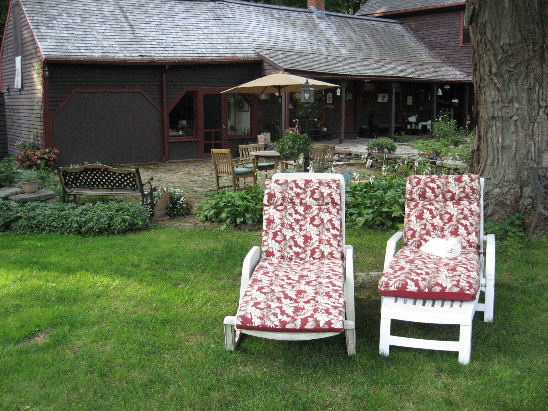 This Connecticut bed-and-breakfast provides several common rooms. The Keeping Room is the central gathering spot where you can relax by the hearth. Enjoy a cup of morning brew in our stone room while awaiting breakfast or watch TV in the “old carriage house” during the warmer seasons. Particularly enjoyable is relaxing on the covered porch during a warm rain!